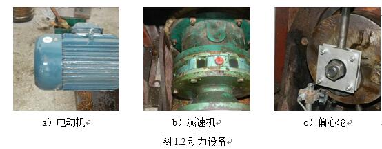 動(dòng)力設(shè)備由電動(dòng)機(jī)、減速機(jī)和偏心輪三部分組成,電動(dòng)機(jī)采用上海力標(biāo)電機(jī)有限公司生產(chǎn)的型號(hào)為Y