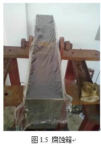 腐蝕箱為不銹鋼材料加工而成,其尺寸大小根據(jù)試驗(yàn)梁具體尺寸而定,要比試驗(yàn)梁的尺寸大一些。里面盛有試驗(yàn)用的腐蝕溶液,對(duì)小梁進(jìn)行腐蝕。